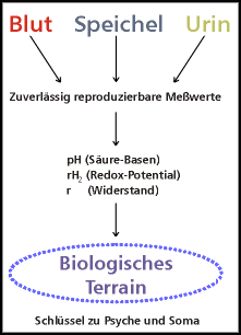 Dabei ergeben sich diagnostisch relevante Meßwerte, die dem erfahrenen Arzt Hinweise auf wirksame Medikamente (Medikamenten-Test) geben. Ebenso können auf diese Weise Störfelder im Körper Nahrungsmittelunverträglichkeiten oder störende Zahnfüllungen wie z.B.Amalgam ermittelt werden. |